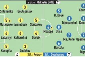 队报为法国队打分:奥利塞&琼阿梅尼8分,姆巴佩仅6分、杜埃5分
